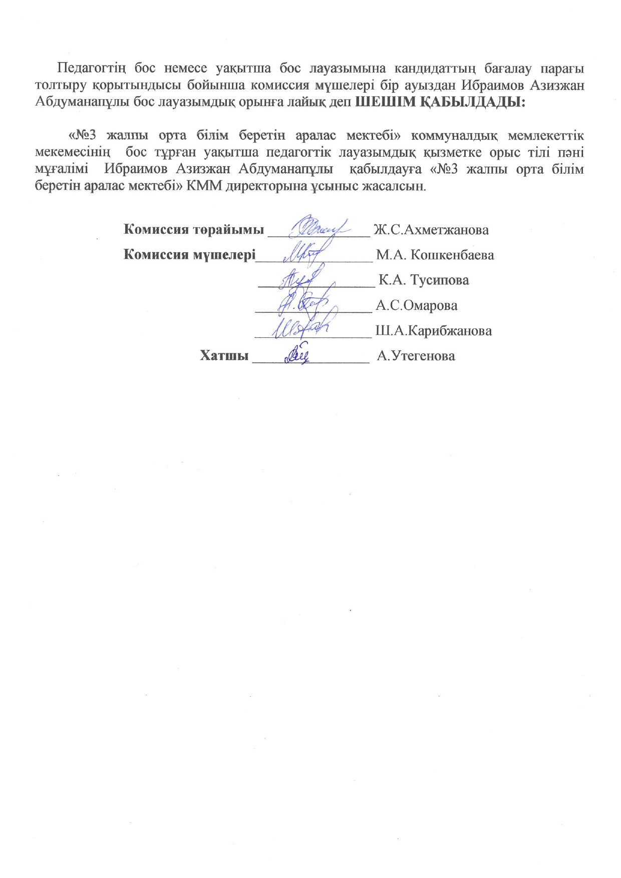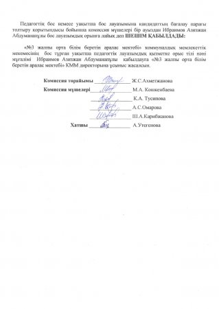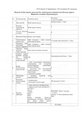 орыс тілі мен әдебиеті пәні мұғалімі конкурсының хаттамасы