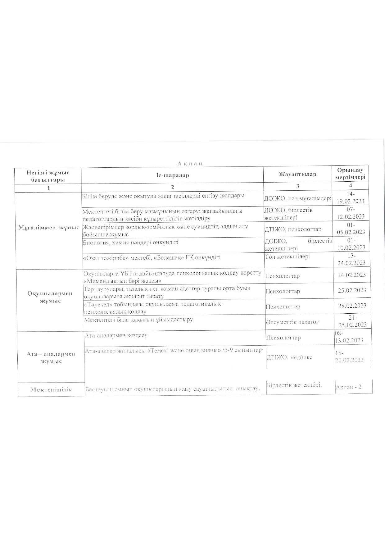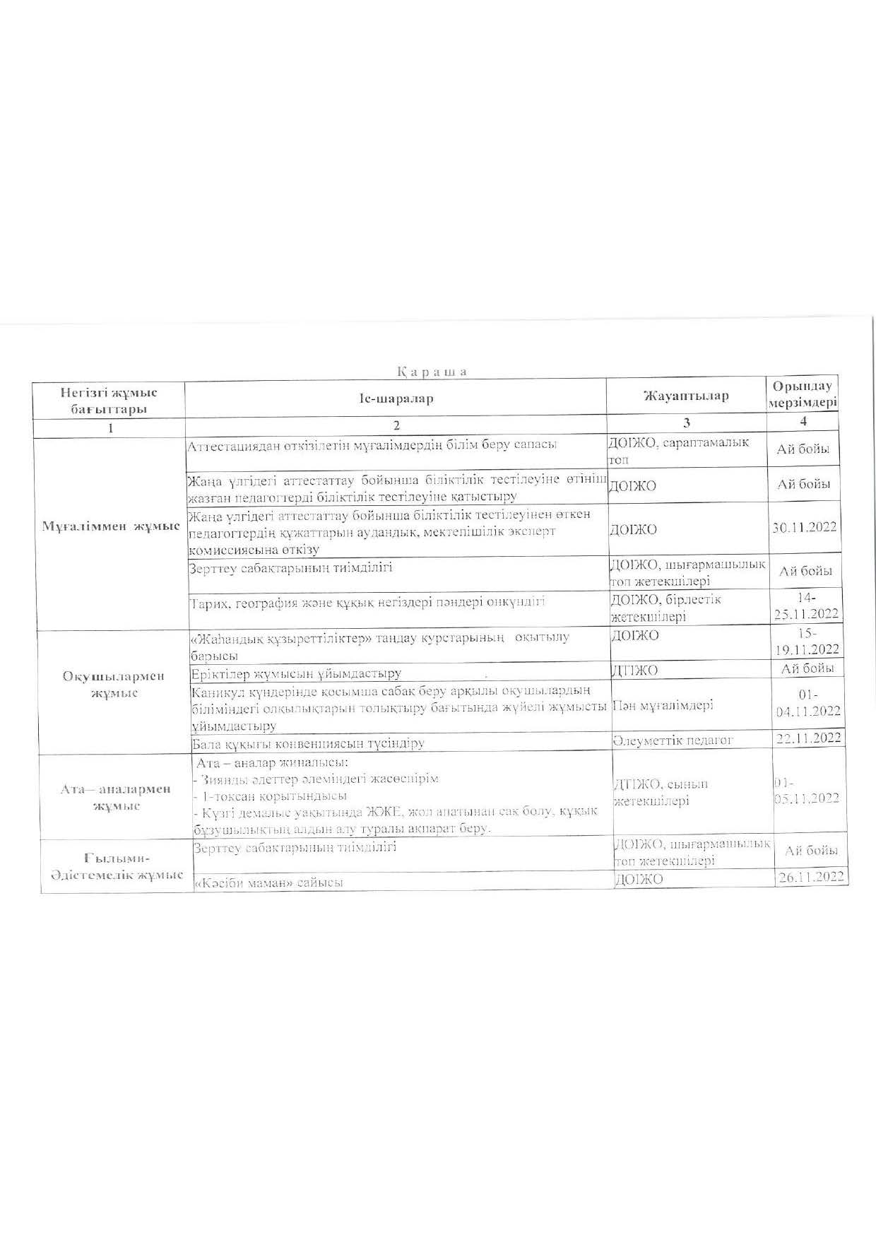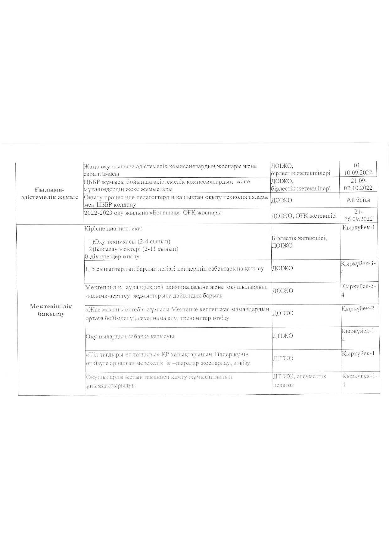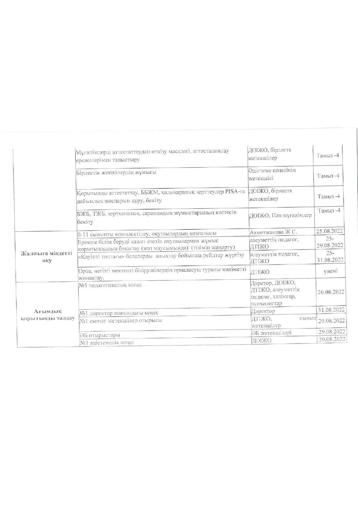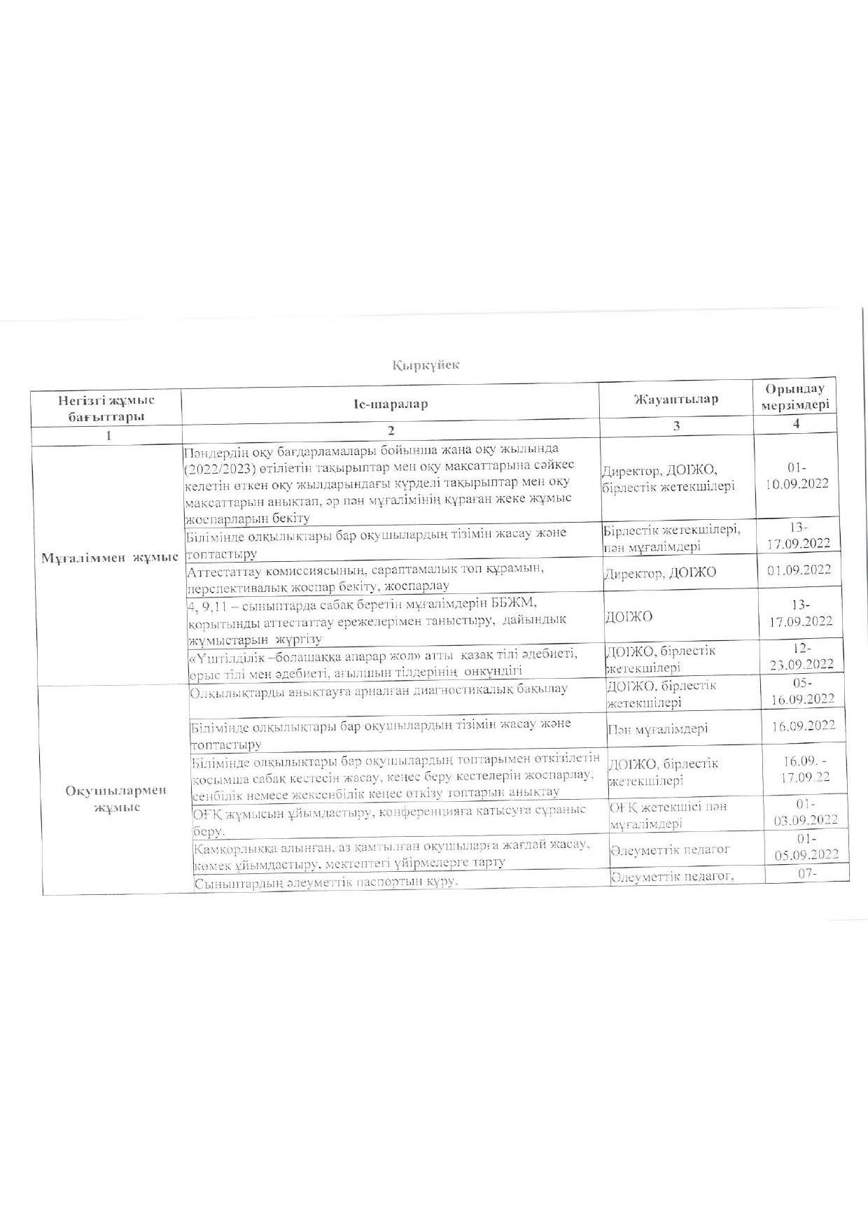 » Оқу-тәрбие жұмыс жоспары 2022-2023 оқу жылы