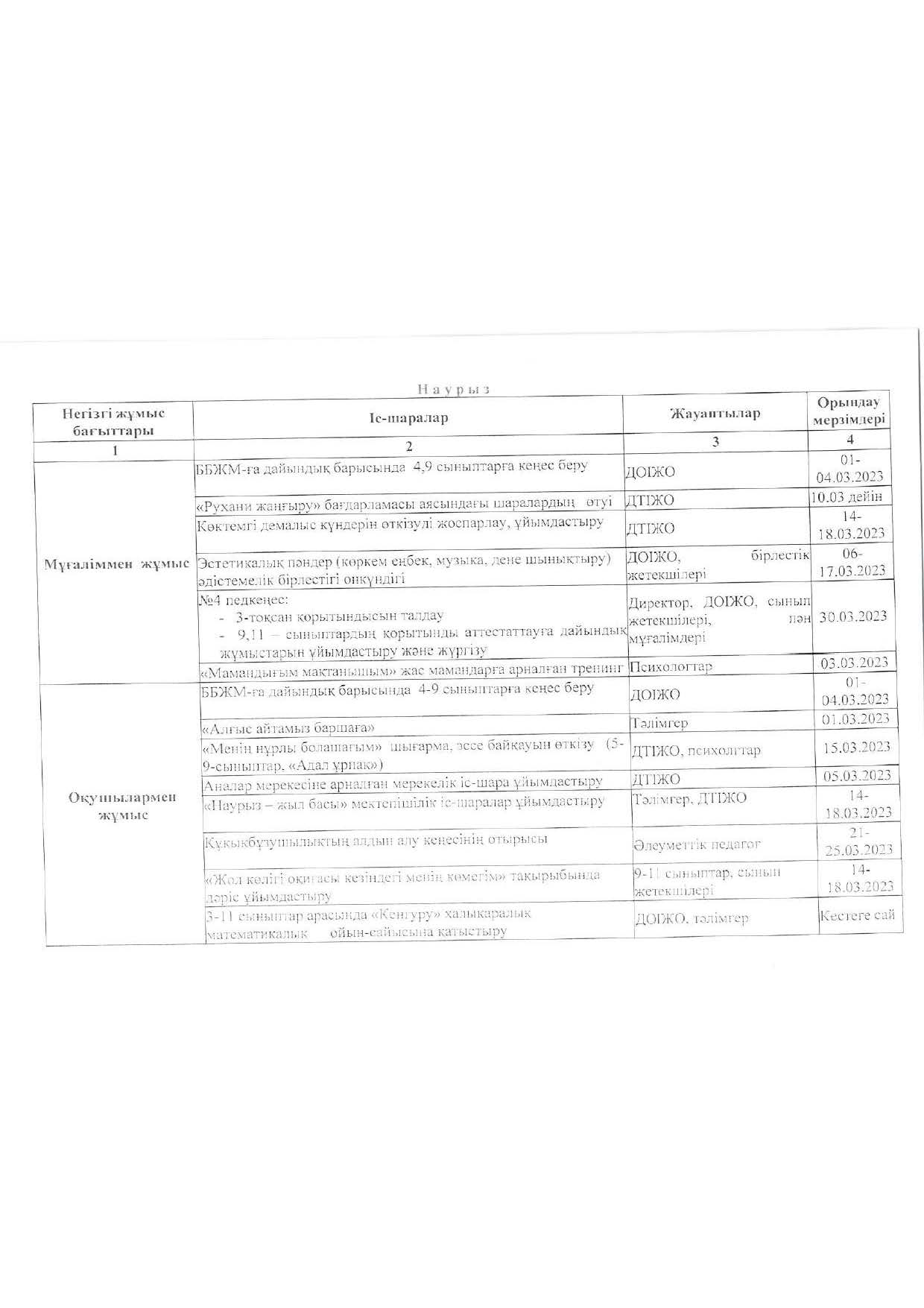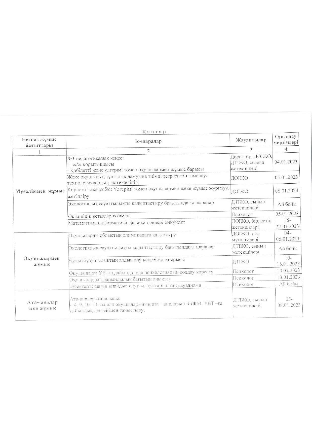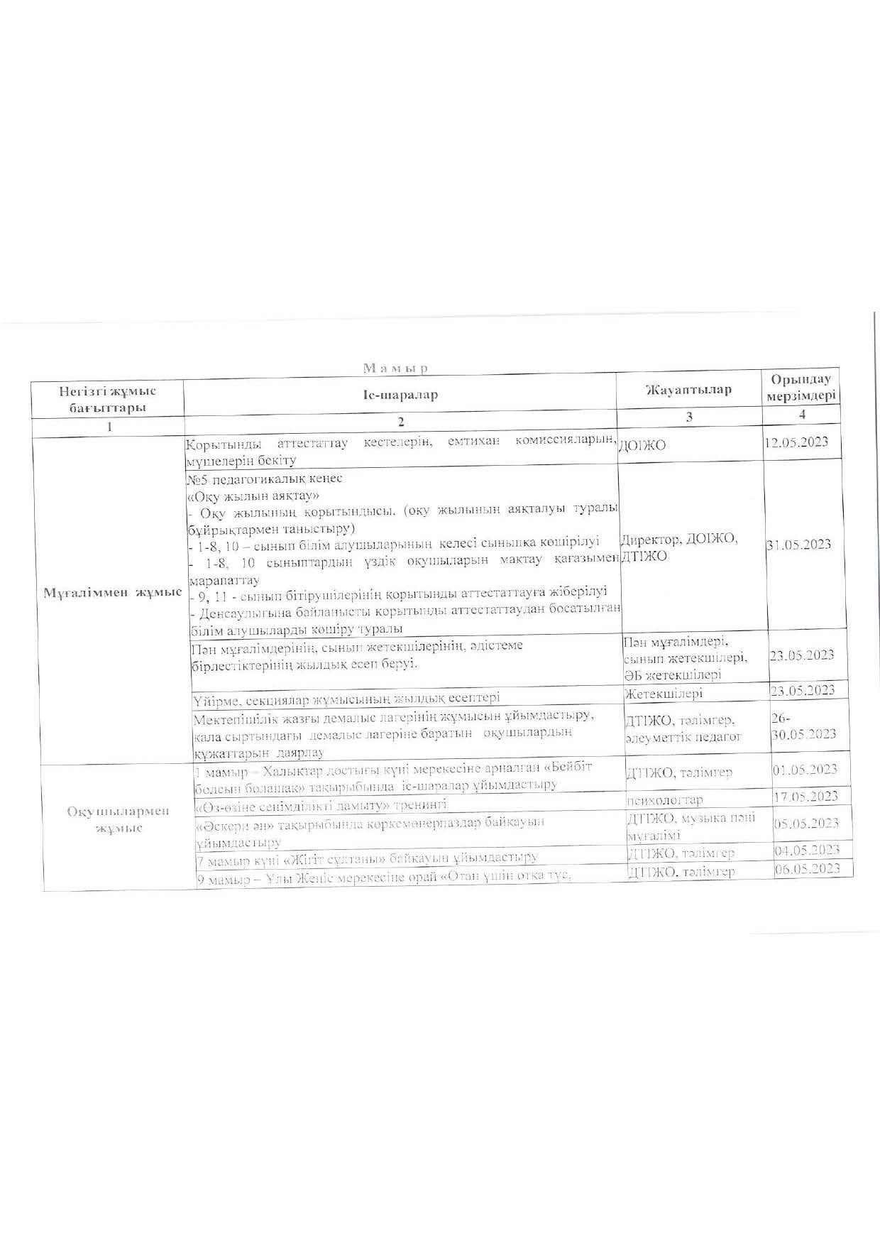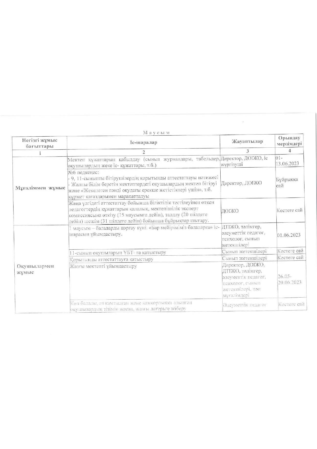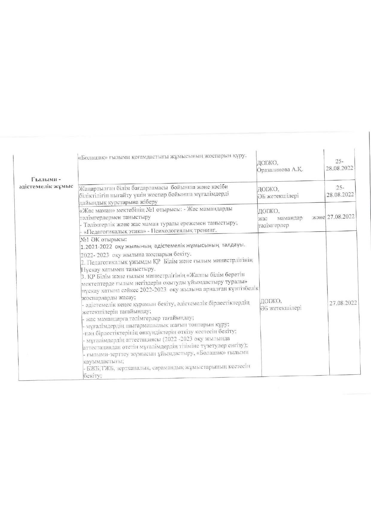 » Оқу-тәрбие жұмыс жоспары 2022-2023 оқу жылы