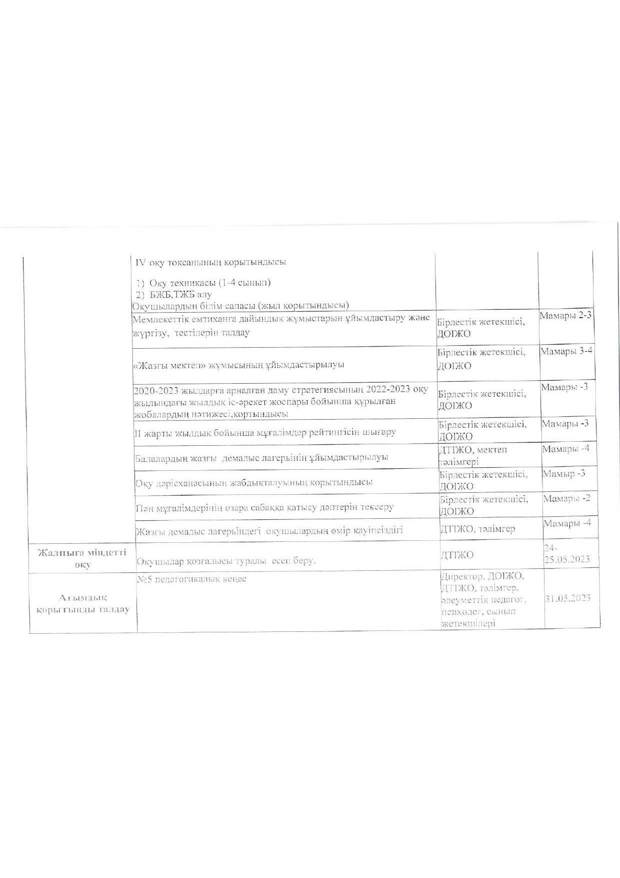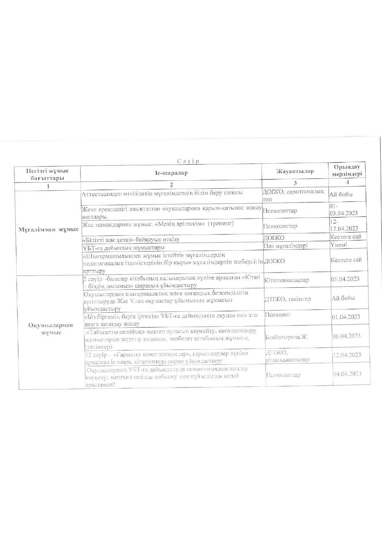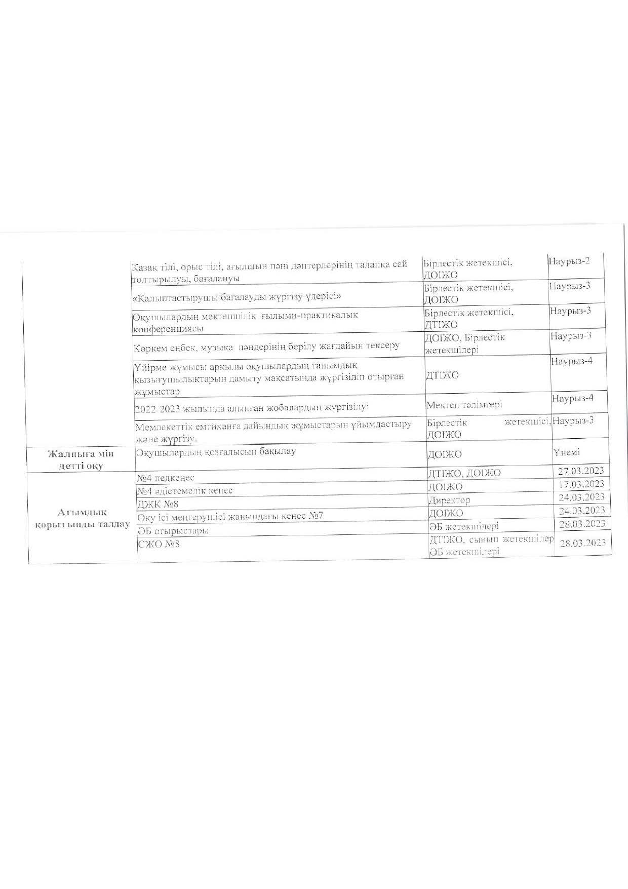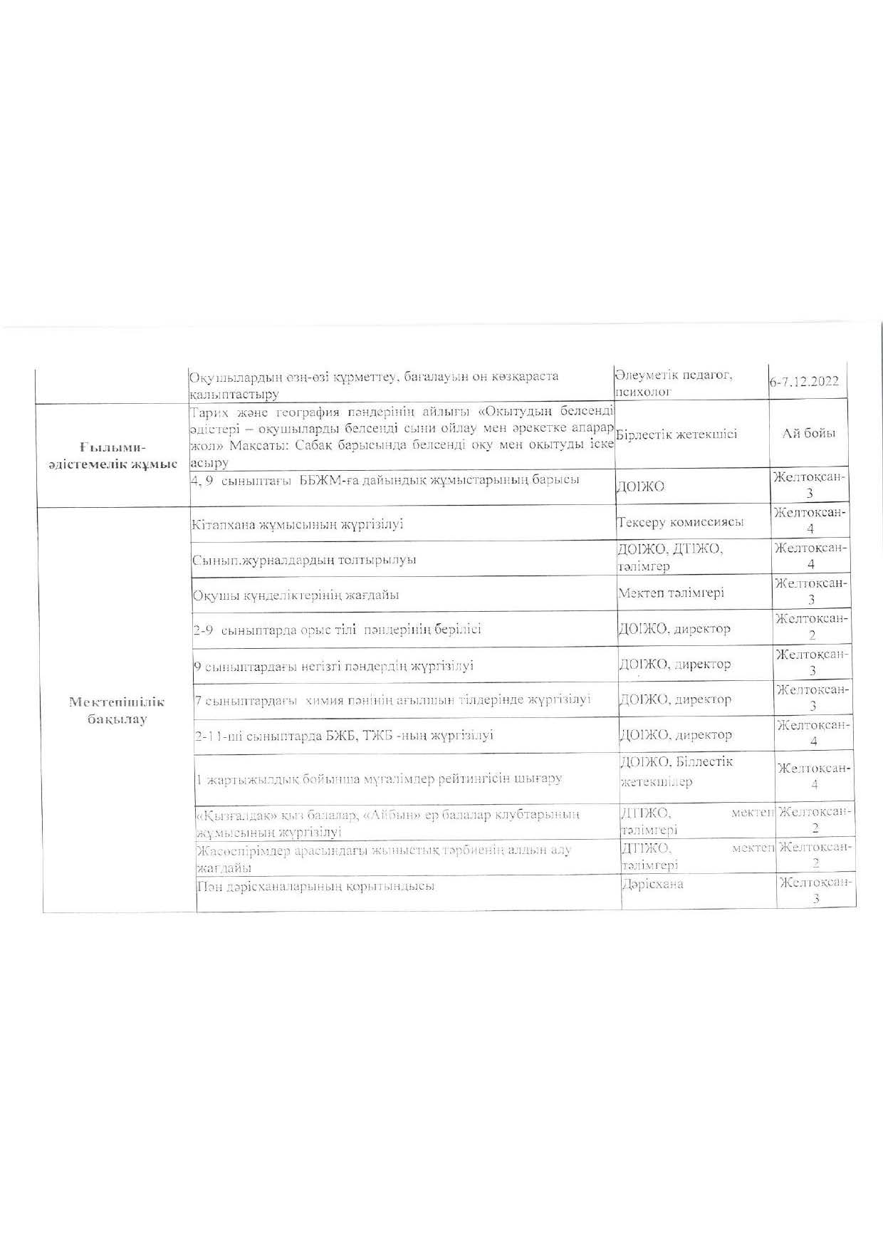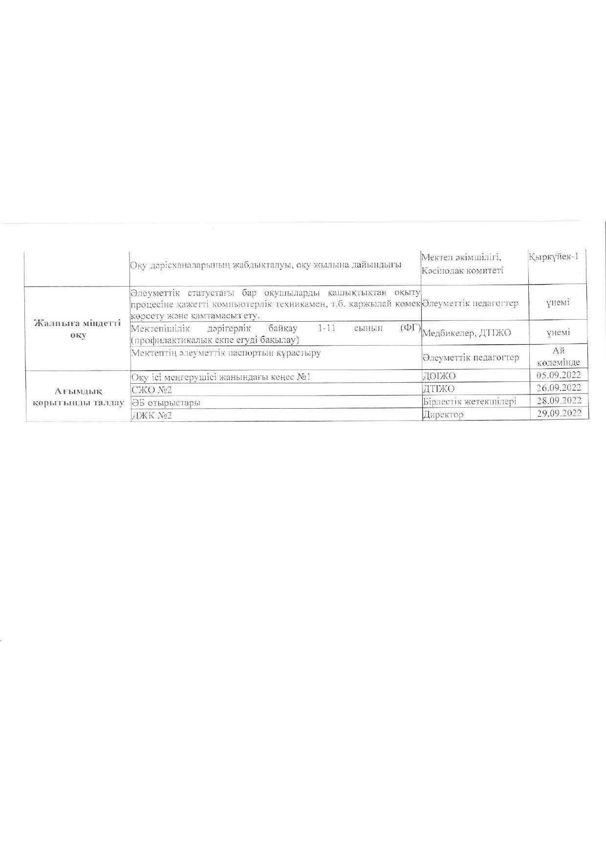 » Оқу-тәрбие жұмыс жоспары 2022-2023 оқу жылы