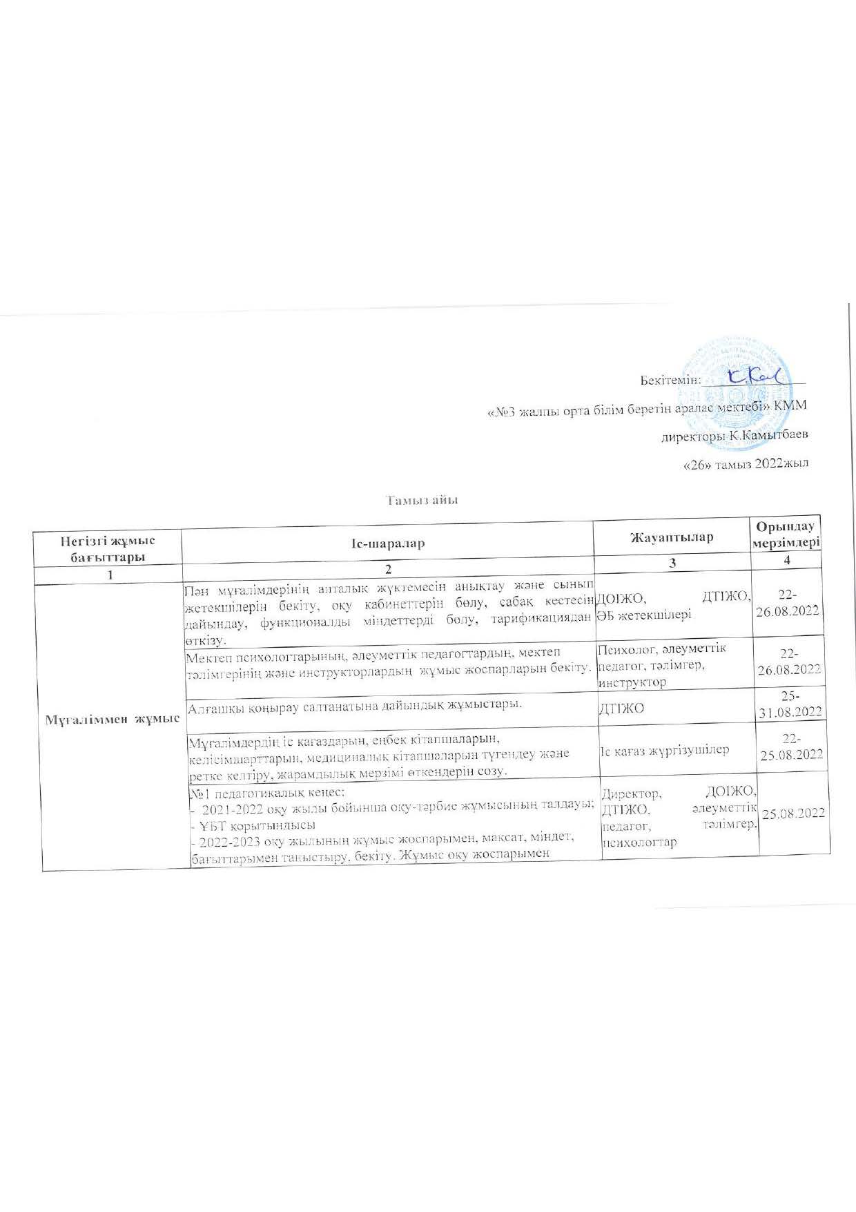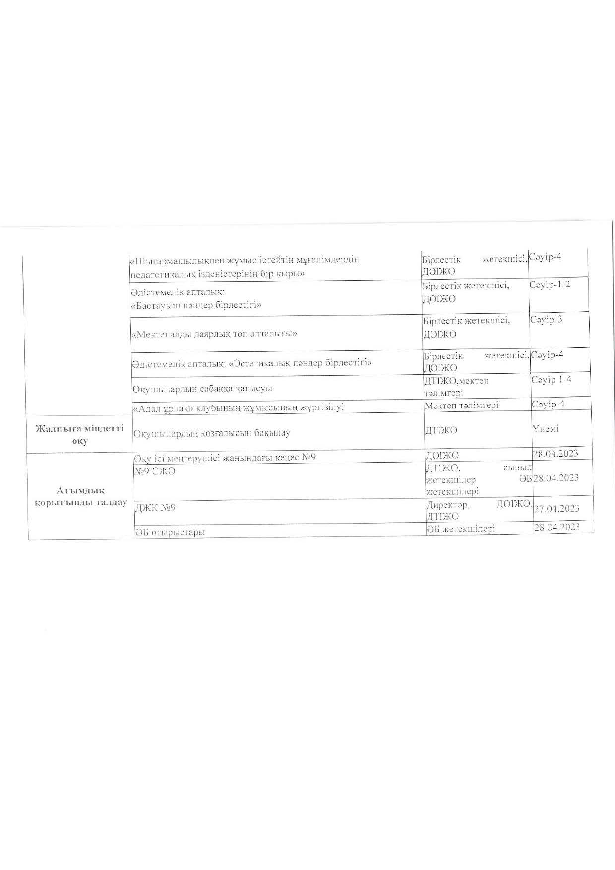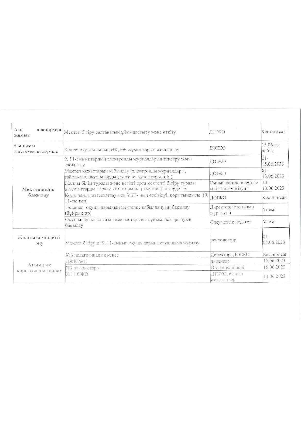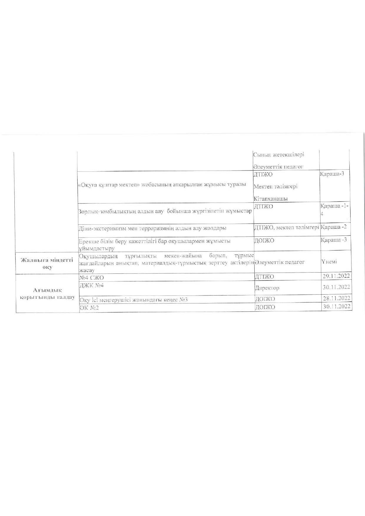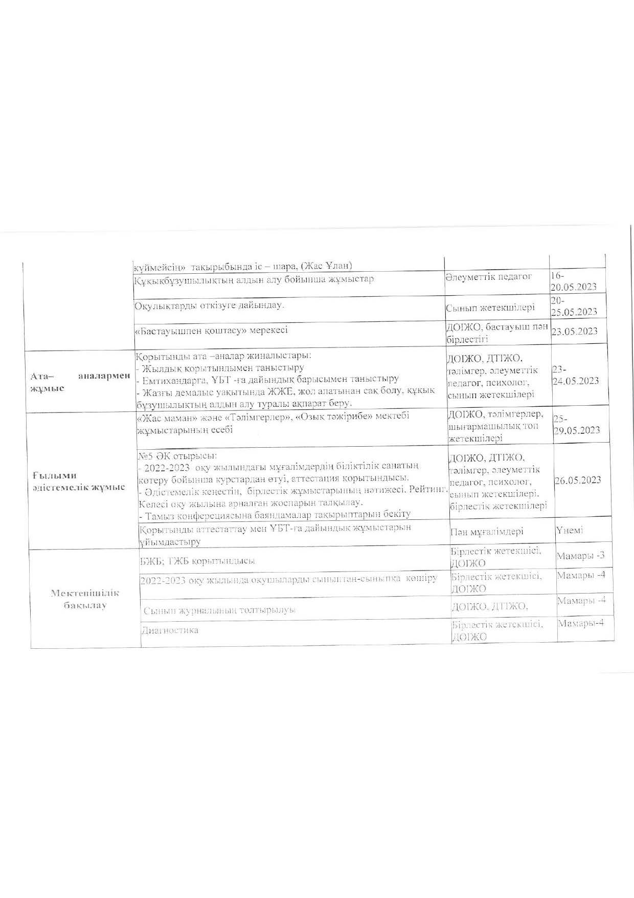 » Оқу-тәрбие жұмыс жоспары 2022-2023 оқу жылы