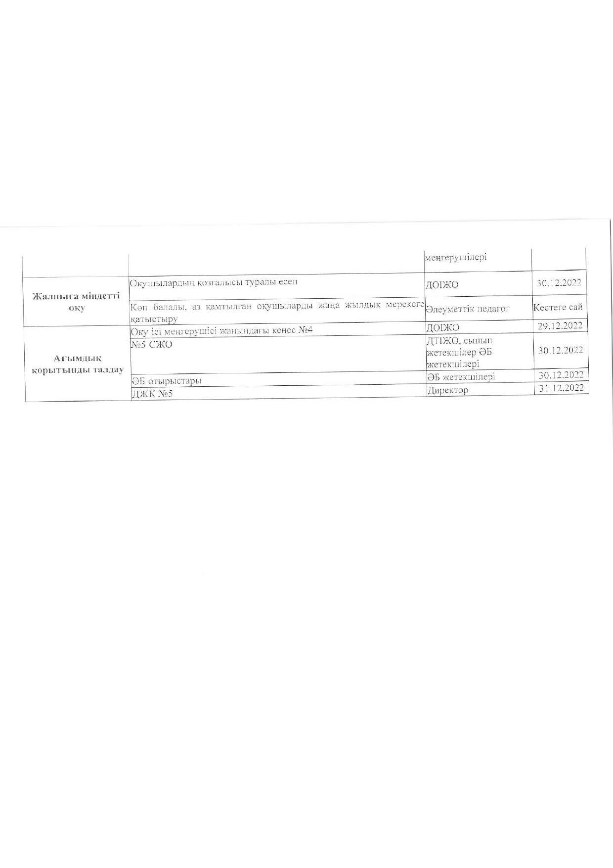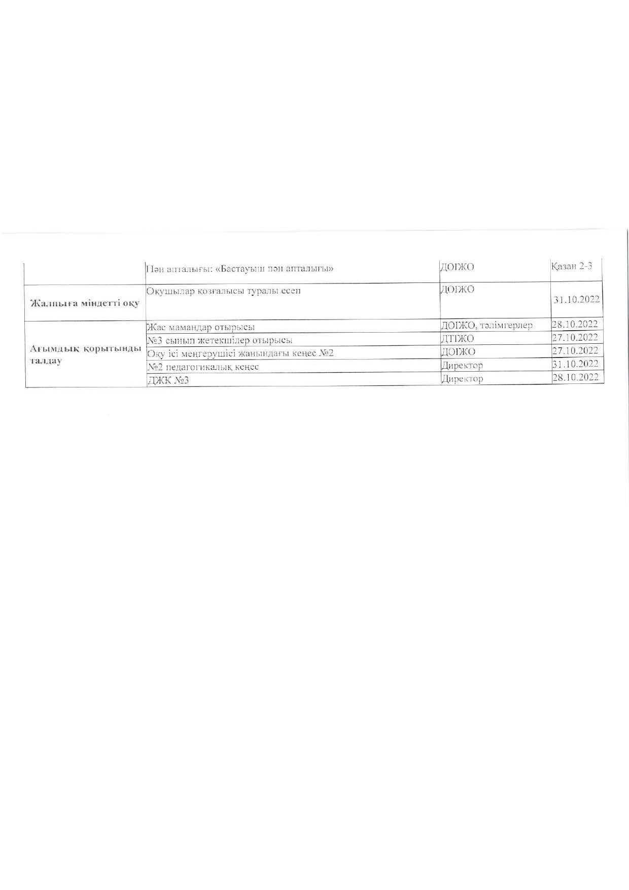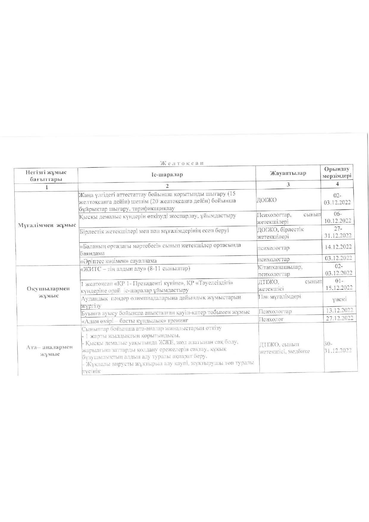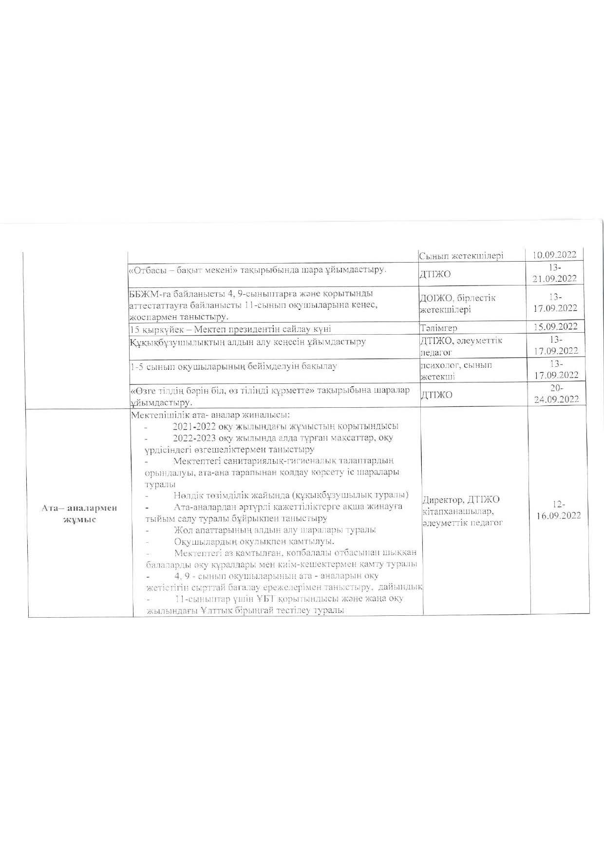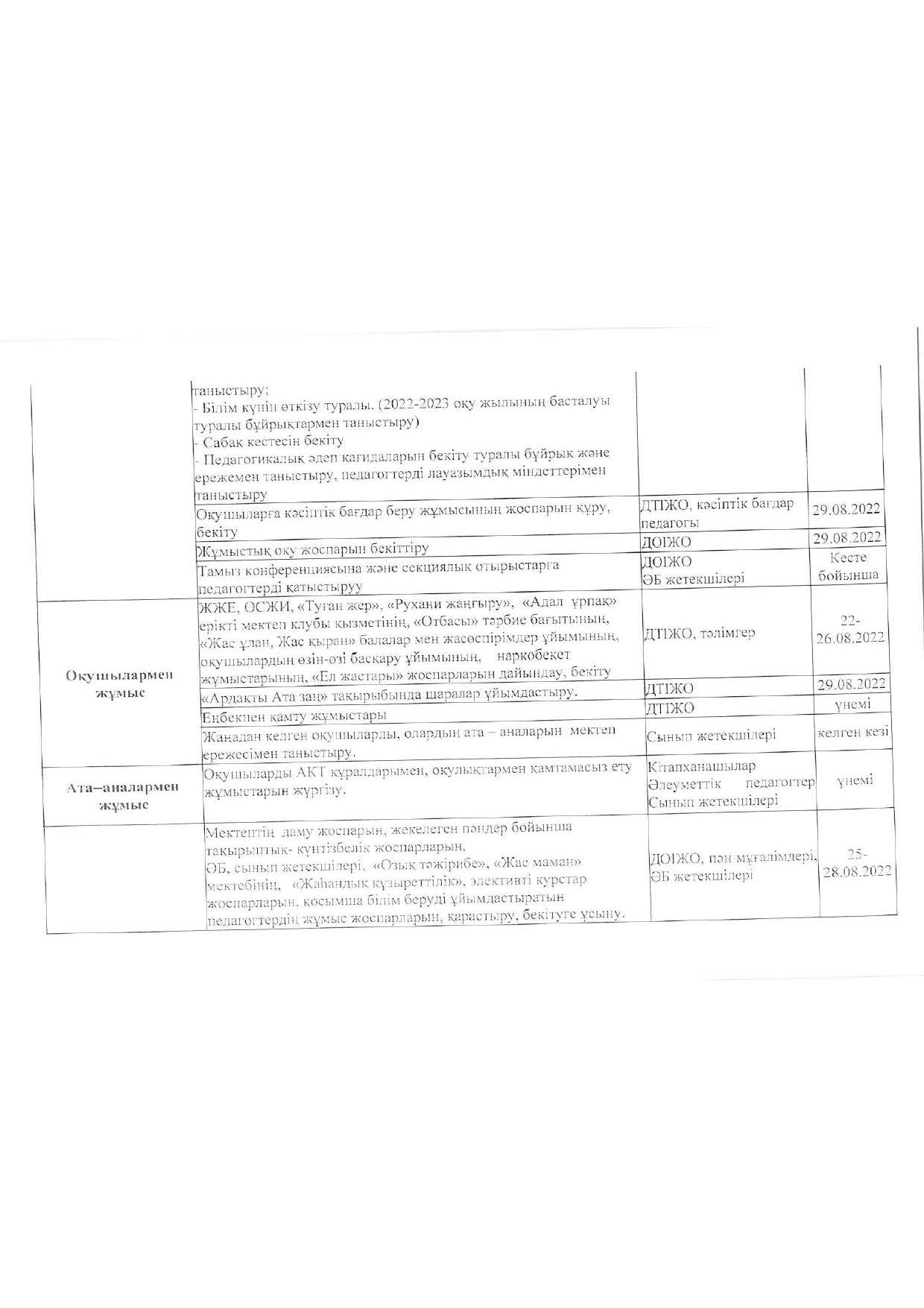 Оқу-тәрбие жұмыс жоспары 2022-2023 оқу жылы